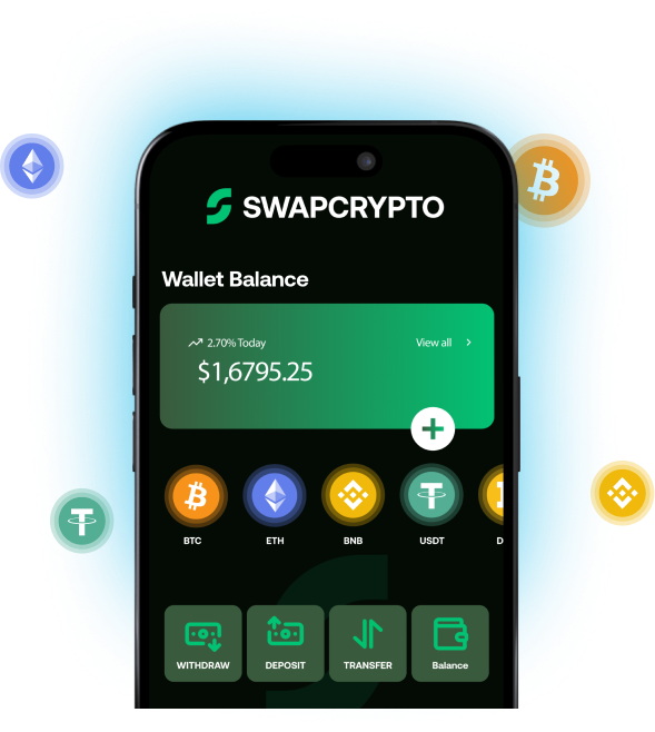 Hold, view, and manage both crypto and fiat in one wallet — BTC, ETH, USDT, USD, EUR, and more.